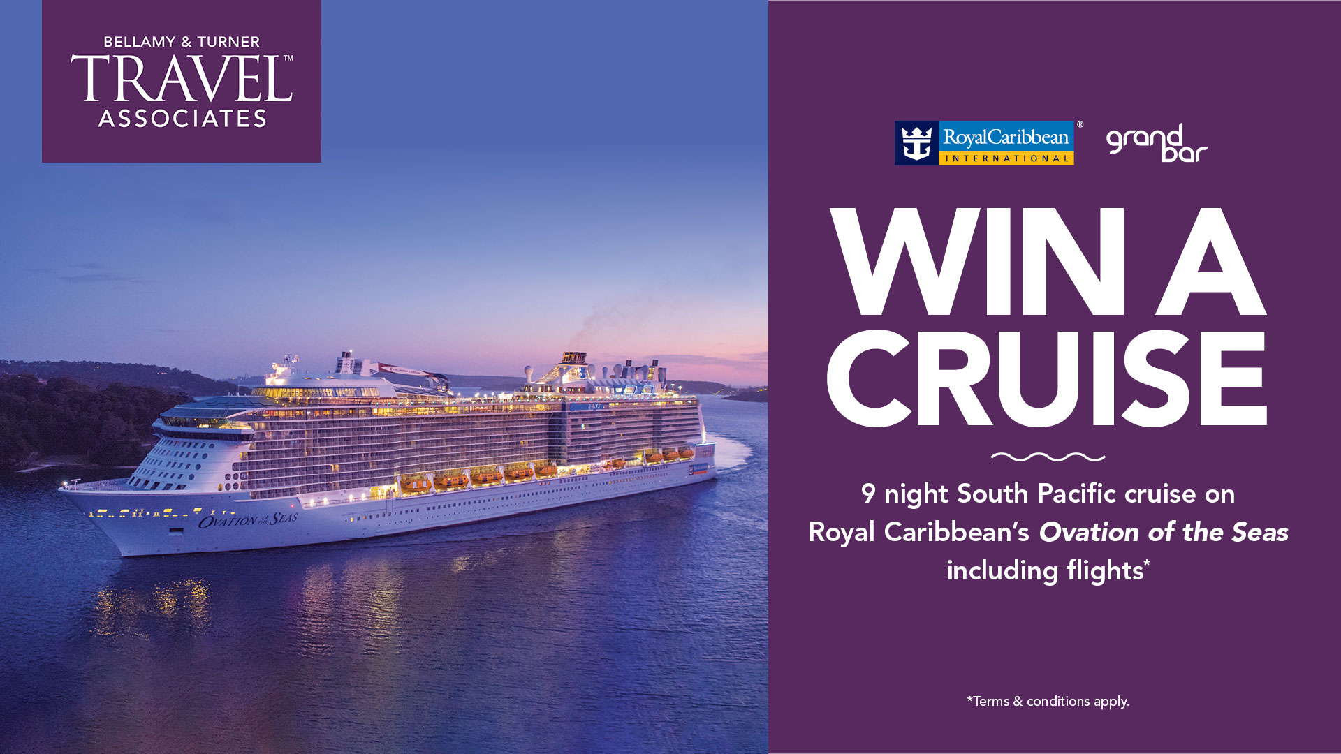 The Grand Bar has teamed up with Bellamy & Turner Travel Associates and Lion Nathan to give you the chance to win a luxury 9-night holiday cruising the South Pacific in November 2020! You could be soaking up some Vitamin Sea aboard the Royal Caribbean’s ‘Ovation of the Seas’, which visits the stunning pacific islands of Vila, Mystery Island and Noumea.